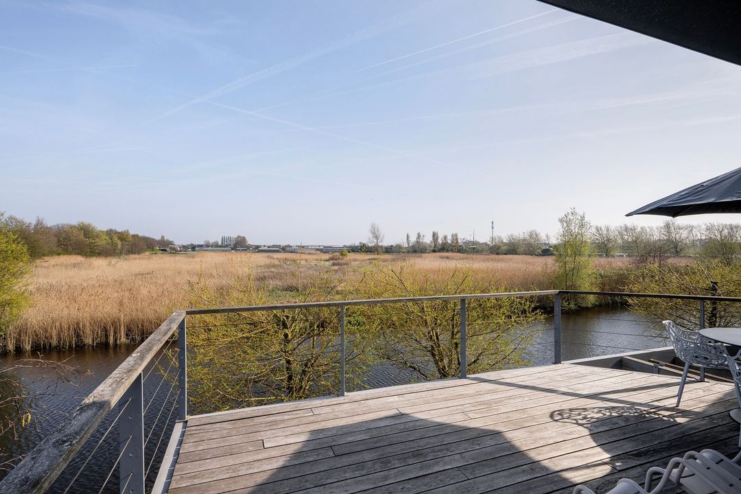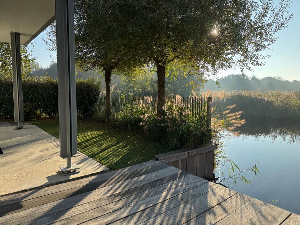 De twee schuifpuien bieden toegang tot de zonovergoten terrassen, waar u kunt genieten van het unieke uitzicht op de watervogels, reigers, vossen en konijnen die het omringende natuurgebied bevolken. Hier creëert u een ultiem vakantiegevoel, rechtstreeks in uw eigen woning.