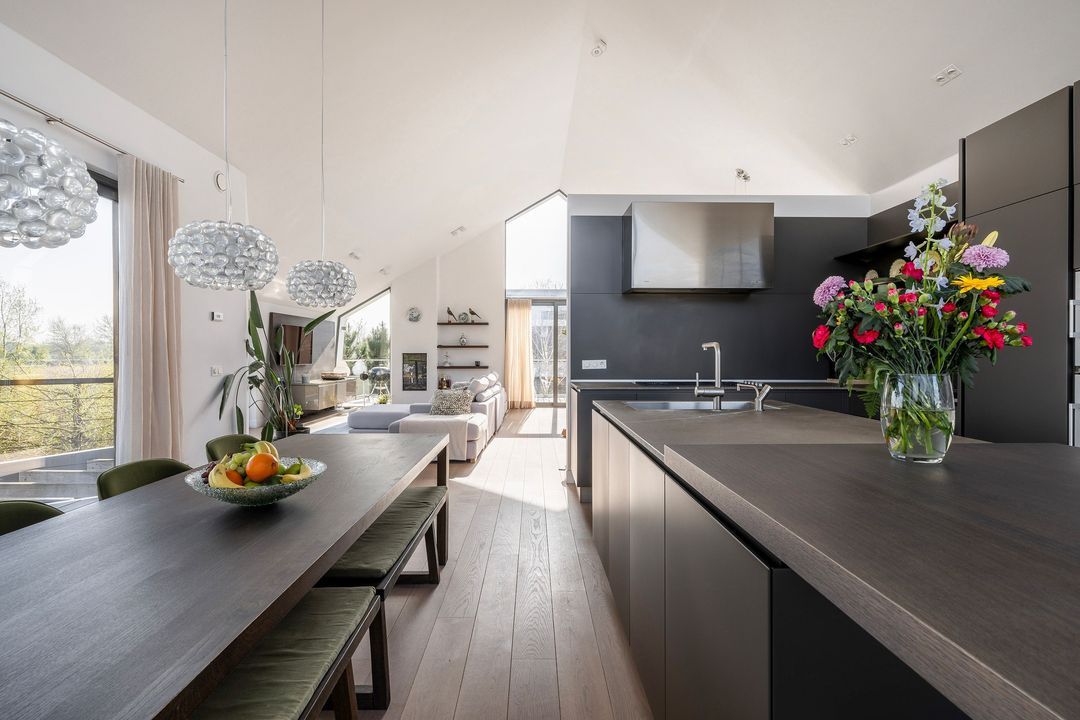 This exceptional kitchen is a dream for any gourmet chef, equipped with top-of-the-line Gaggenau appliances: gas stove, extractor hood, fridge-freezer, dishwasher, oven, steam oven, and Quooker. Culinary perfection is always within reach.