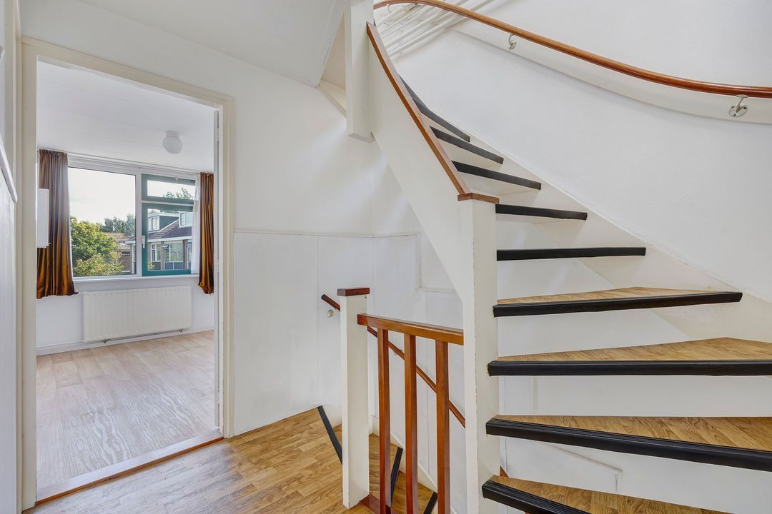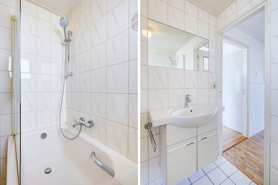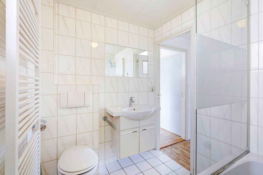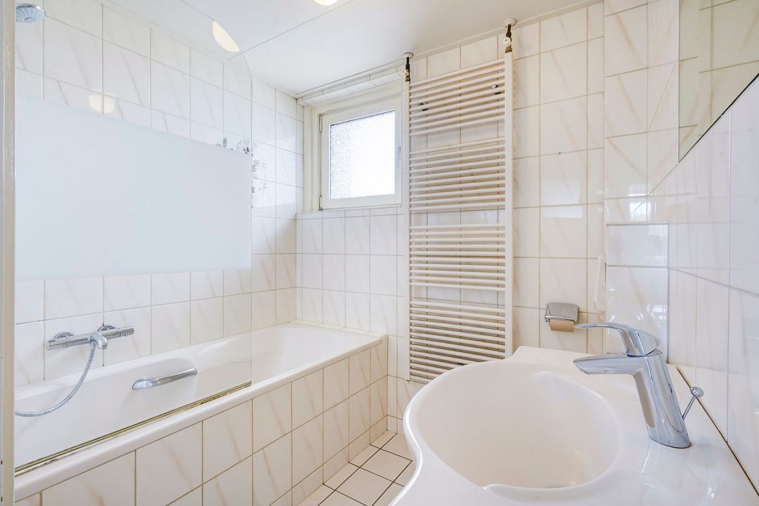 Overloop, achterzijkamer, achterslaapkamer voorzien van 2 vaste kasten, voorslaapkamer met dito uitzicht en wastafelmeubel, geheel betegelde badkamer voorzien van ligbad/douchecombinatie, toilet en wastafel.