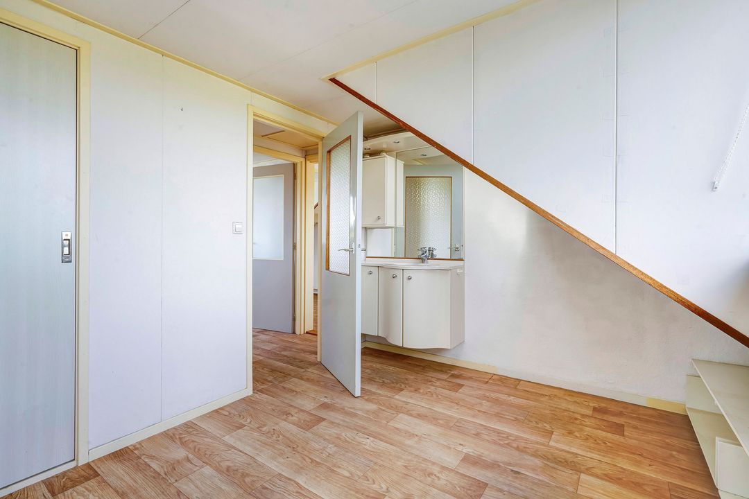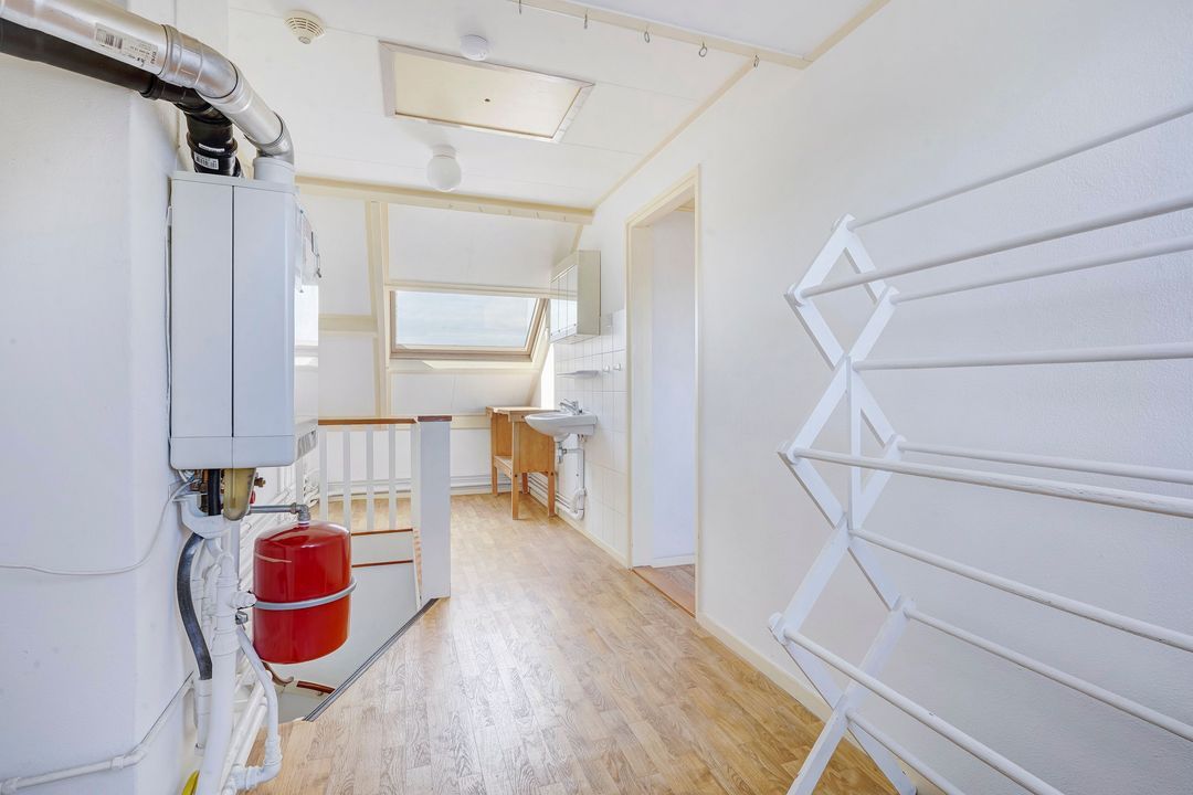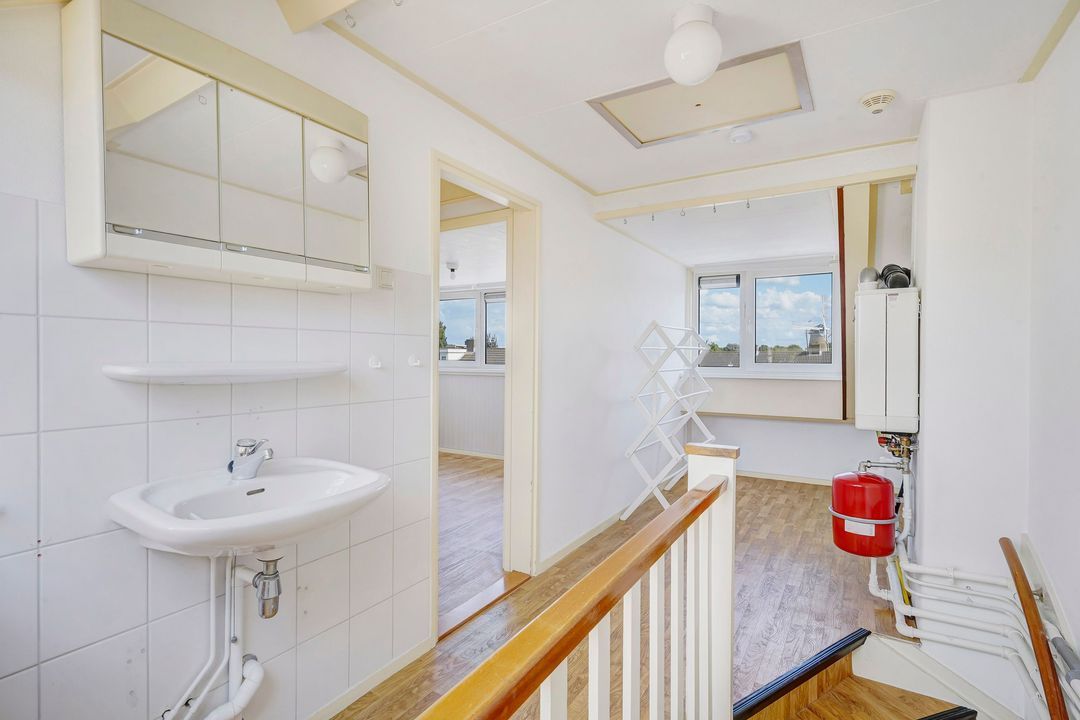 Riante overloop, wasmachineaansluiting en wastafel, toegang naar de vliering voorslaapkamer met dakkapel, vaste kast en wastafelmeubel, achterslaapkamer tevens met een groot dakkapel en een vaste kast.
